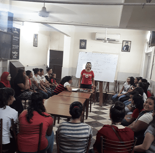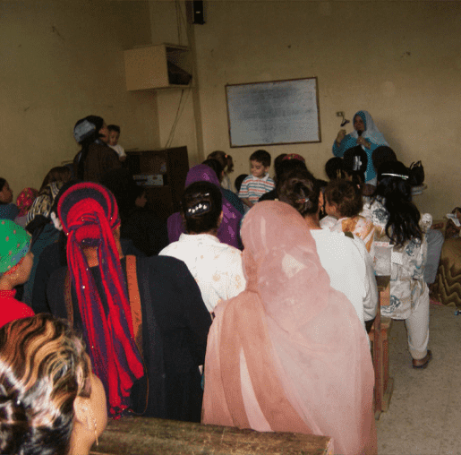 عمل زيارات منزلية للسيدات من قبل فريق الجمعية المدرب و ذلك لأسترجاع ما تم تعلمه من معارف